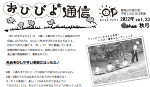おひさまぴよぴよの紹介や、子育て、そして外あそびについての読み物を掲載したニュースレター「おひぴよ通信」、最新号ができました。おひさまぴよぴよ会場にて配布しているほか、近隣の子育て関連施設などにも置かせていただいています。ぜひ、手に取ってご覧ください。